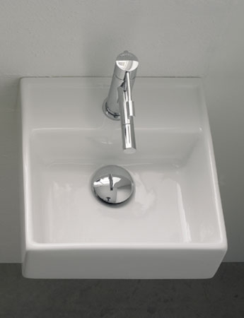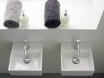 Lavabo cuadrado, para sobreponer, medida de 30 x 30cm, de la línea Teorema, modelo 8036, marca Scarabeo.