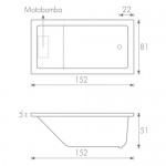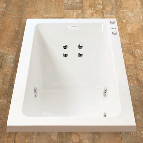 Tina rectangular, fabricada en acrílico de 3.2 mm. de alto impacto y brillo. Sin Hidromasaje