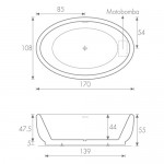 Tina oval freestanding, fabricada en acrílico de 3.2 mm. de alto impacto y brillo. Con Blower y Aquacolor